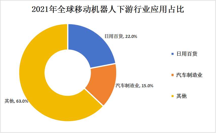 根據數據顯示,2021年全球移動機器人在日用百貨(倉儲)和汽車領域的占比分別為22%和15%,這表明這兩個領域是移動機器人應用的重要市場。隨著技術的不斷進步和市場的不斷擴大,移動機器人在這些領域的應用將會更加廣泛和深入。