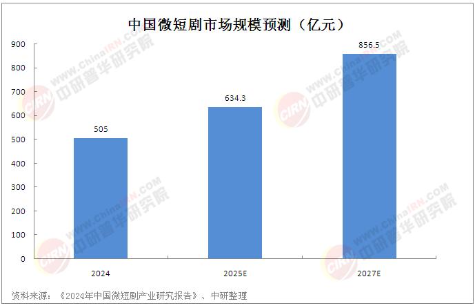 根據《2024年中國微短劇產業研究報告》,2024年我國微短劇市場規模已達到505億元,首次超過電影票房規模。步入2025年,短劇市場勢頭不減。據巨量引擎數據顯示,2025年1月在投短劇公司數量同比增長54%,在投劇目數增長101%。據《2024年中國微短劇產業研究報告》,2025年微短劇市場規模將達到634.3億元。
